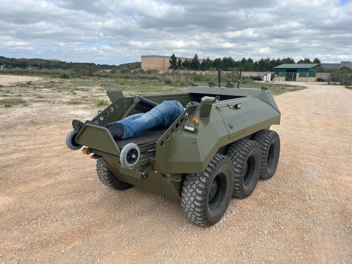 El UGV ALANO durante la demostración de su capacidad MEDEVAC en el INTA (EINSA)