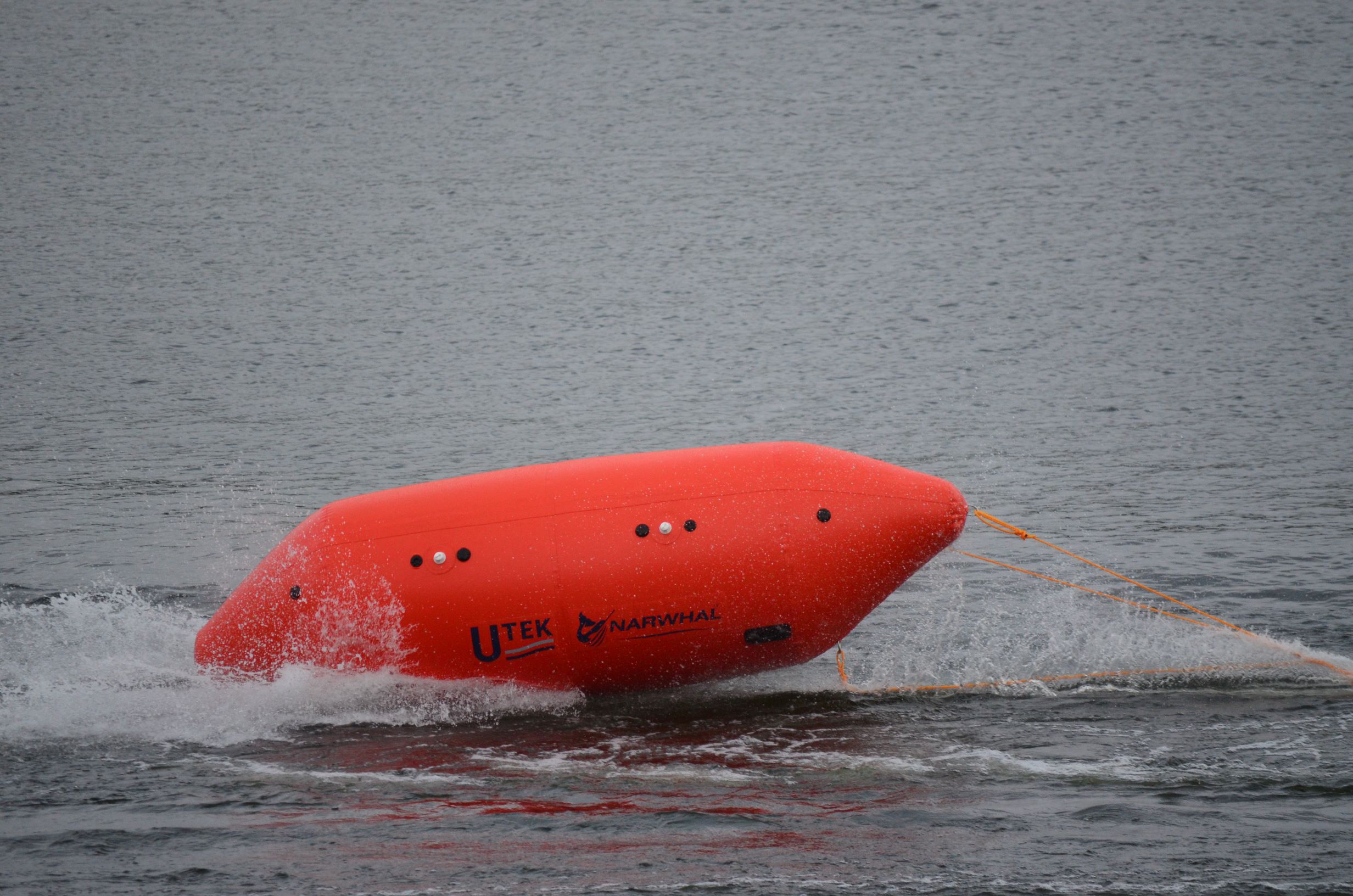 Foto: Uno de los blancos hinchables remolcados de la empresa (Utek)