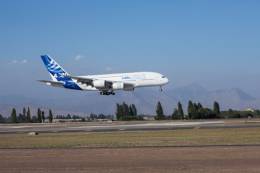 Airbus inicia su presencia en FIDAE con la llegada de su ícono, el A380. El avión A380 (MSN1) despegó desde su base en Toulouse, Francia, el 23 de marzo, y hará varias exhibiciones en vuelo durante la feria.