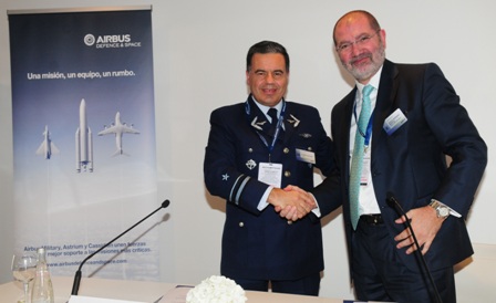 El Acuerdo de Colaboración fue firmado hoy por el Director Comercial de Military Aircraft en Airbus Defence and Space, Antonio Rodríguez Barberán, y el Director Ejecutivo de Enaer General de Brigada Aérea, Henry Cleveland. El evento tuvo lugar en el marco de esta decimoctava edición de la Feria Internacional del Aire y del Espacio, FIDAE.