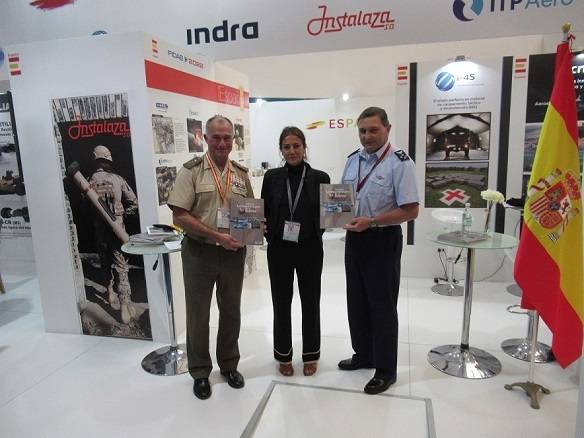 Eva Cervera, directora de Grupo Edefa, presentó en FIDAE, acompañada del Comandante en Jefe de la Fuerza Aérea de Chile, General del Aire Arturo Merino, y del General Sáenz de Santamaría, del Ministerio de Defensa Español, la edición 2022 del Anuario Latinoamericano de la Defensa en el Pabellón de España, organizado por TEDAE.