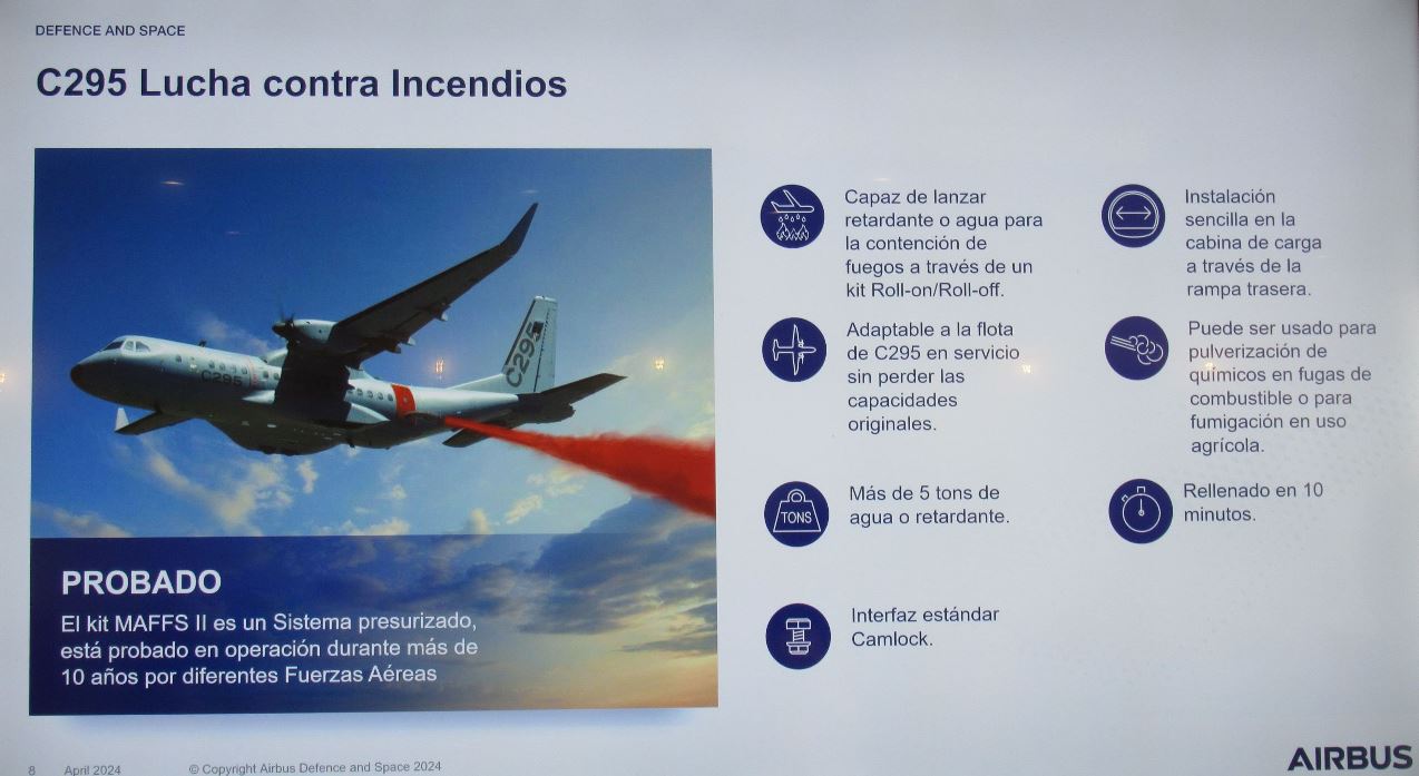 El C295 está integrando el kit MAFFS II para su uso como apagafuegos (captura presentación)
