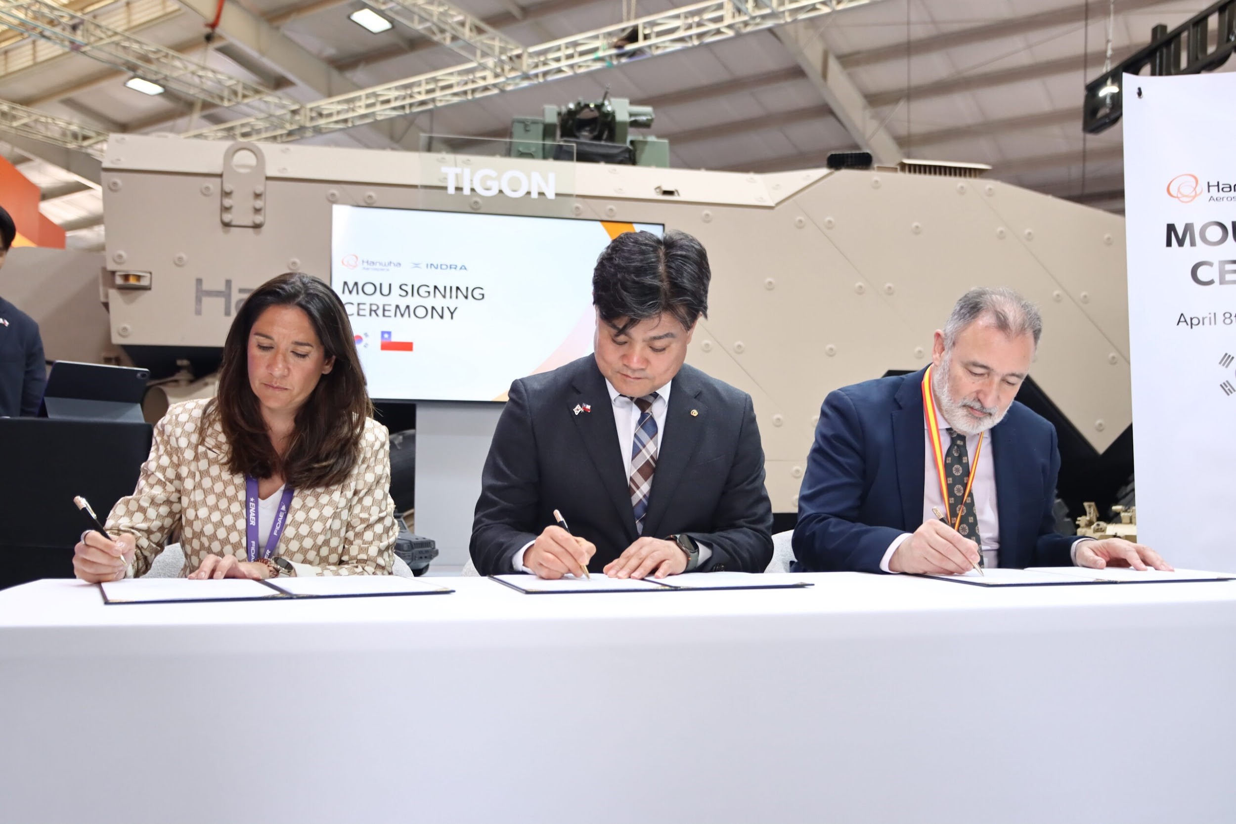 El acuerdo, firmado el miércoles 8 de abril, busca ofrecer una propuesta integrada para el programa de vehículos blindados de nueva generación que impulsa el Ejército chileno. Según los términos del MoU, Hanwha Aerospace aportará sus plataformas de vehículos blindados como el conocido 6x6 Tigon, mientras que Indra suministrará los sistemas de misión, incluyendo conectividad, conciencia situacional y mando y control (C2), además de actuar como coordinador regional.