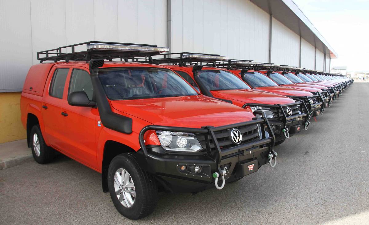 Línea de los “Amarok” recién entregados, que han sido carrozados por Tecnove, todavía sin las insignias de la Unidad.