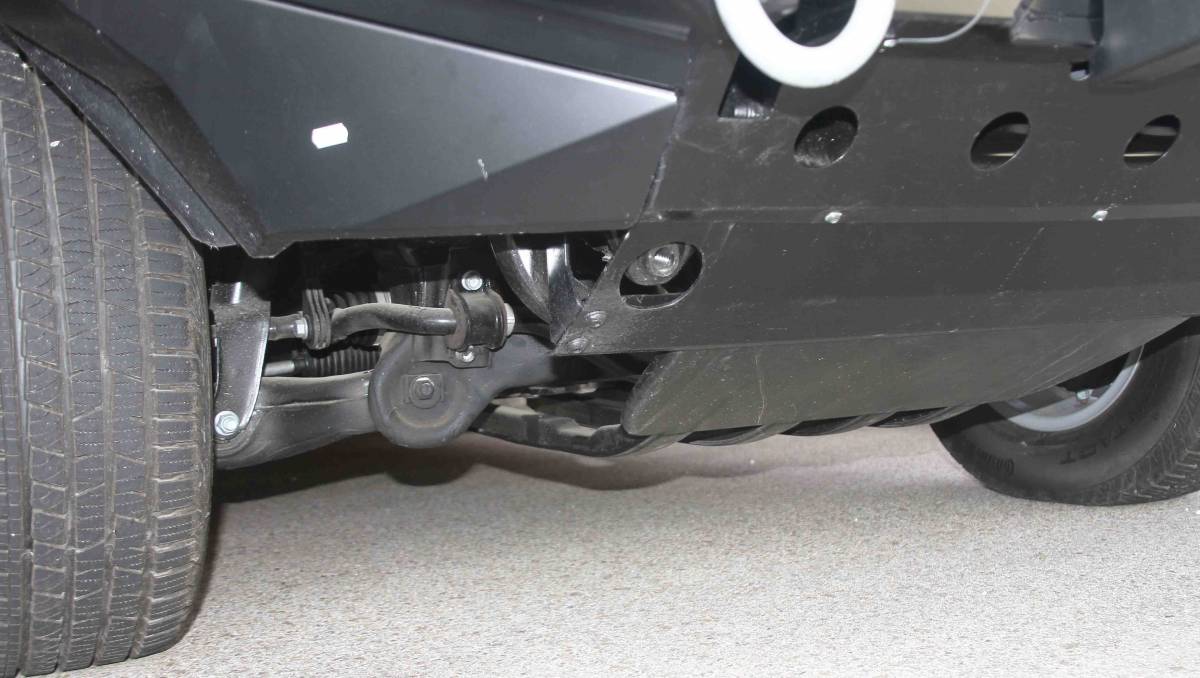 Vista frontal en la que se aprecian los ganchos de arrastre, en la caja central va alojado el cabrestante
