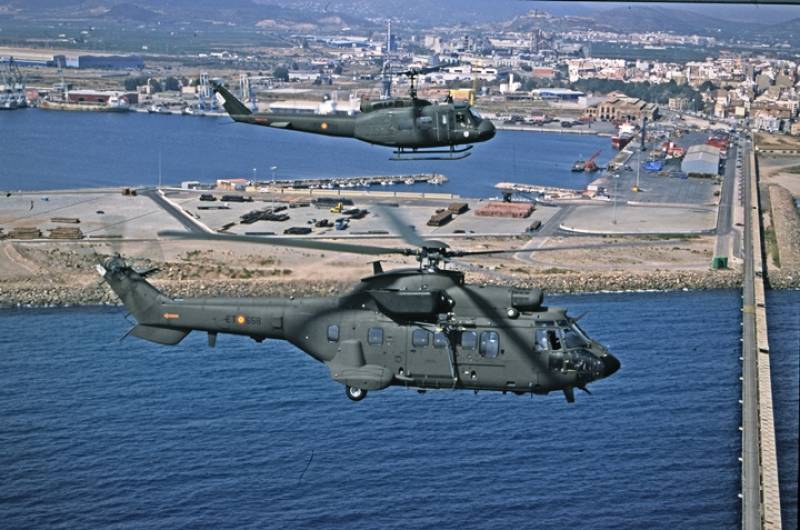 Los UH-1H (arriba) fueron paulatinamente sustituidos con sistemas más modernos como el AS532 “Cougar”, que vemos en primer plano.