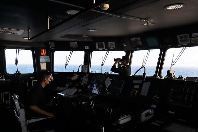 Imagen del amplio puente de mando del navío insignia de la Armada española.