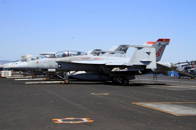 Los aviones de los jefes de escuadrón de la US Navy llevan las marcas en color, como este F/A-18F del VFA-11.