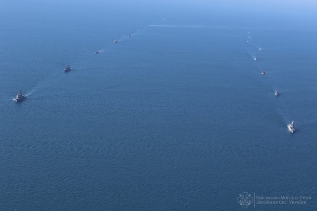 La formación naval recorriendo el mar Negro, en dos columnas.