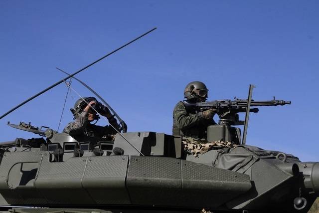 Un blindado Leonardo “Centauro” espera con toda su tripulación lista para entrar en acción.