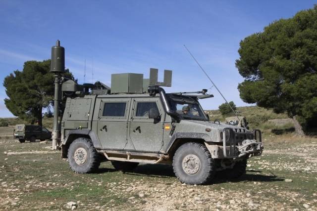 Durante las maniobras la caballería de la BRIPAC fue apoyada por los medios del Regimiento de Guerra Electrónica 31, como este Iveco “Lince” equipado con medios de Electronic Warafare (EW).