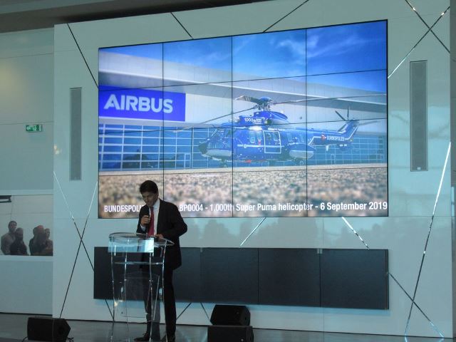 Con motivo de la entrega del Super Puma número 1.000 que tenía por cliente la Policía Federal Alemana (Bundespolizei), Airbus Helicopters organizó una ceremonia de entrega del aparato al cliente y posteriormente un evento en el que se celebraba el hito de los 1.000 aparatos Super Puma fabricados y entregados. Además del H215 civil para la Bundespolizei se mostraron otro Super Puma civil y un H225M del Ejército del Aire francés (Armée de l’Air).