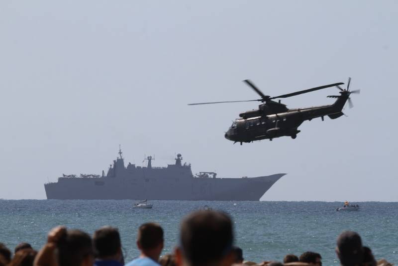 La Base Naval de Rota ha sido escenario de los actos de celebración del centenario de la Aviación Naval española, en los que pudimos ver, entre otras, las distintas aeronaves que conforman la Flotilla de Aeronaves (FLOAN). Una de las novedades de la demostración fue la presencia frente a la Playa de la Costilla del buque insignia de la Armada, el navío anfibio o Landing Helicopter Dock (LHD) Juan Carlos I, desde el que despegaron los AV-8B+ Harrier II y los helicópteros SH-3D Sea King participantes en la exhibición.