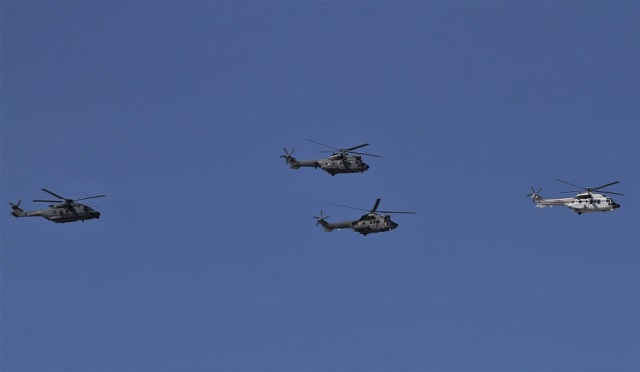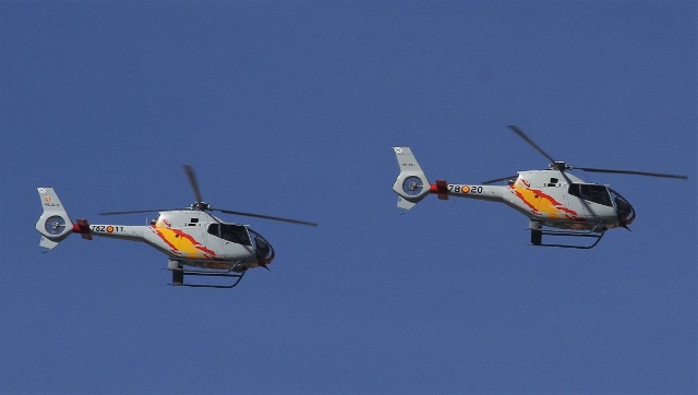 Pasada de cuatro helicópteros del Ejército del Aire, que cierra un NH90.