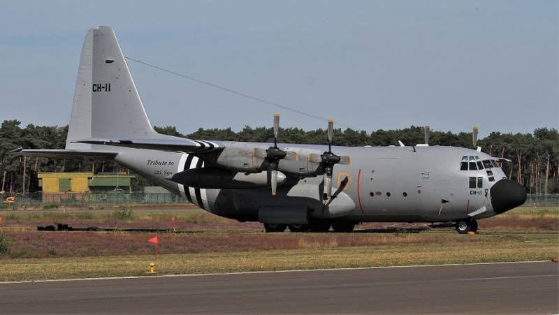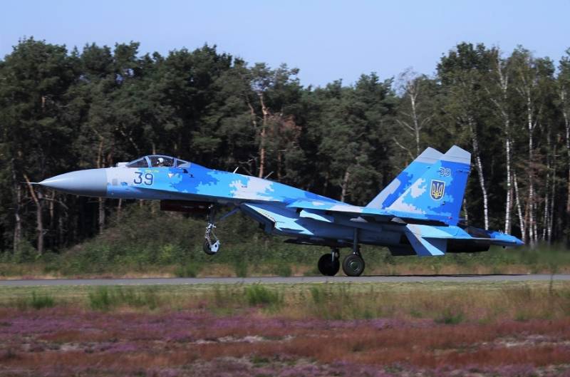 El transporte Ilyushin IL-76 ucraniano que transporte el personal de apoyo y el material necesario para operar el cazabombardero Su-27.