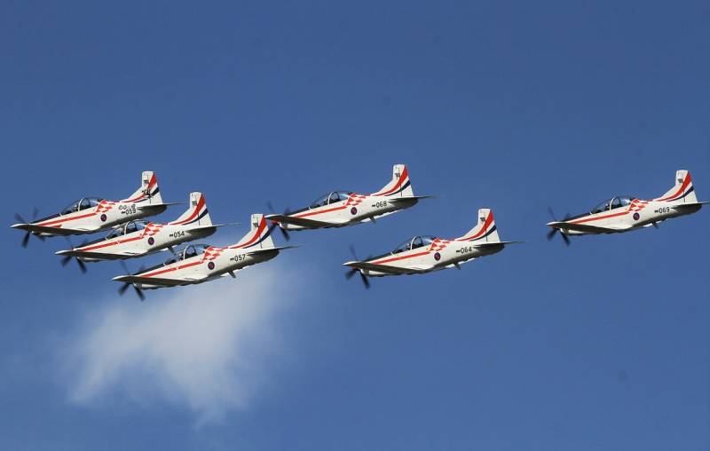 La patrulla acrobática croata “Wings Of Storm” que utiliza el turbohélice de entrenamiento Pilatus PC-9M.