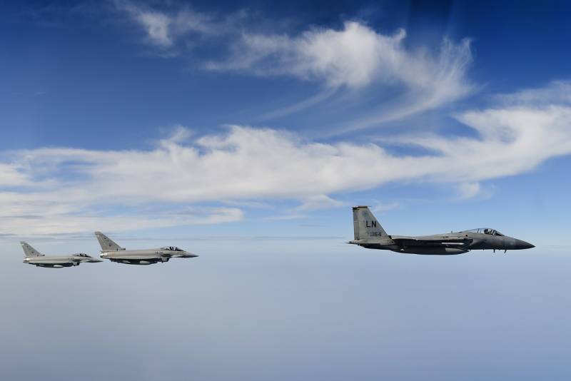 Desde la base aérea de RAF (Royal Air Force)-Lakenheath, sita en Inglaterra, la USAFE desplazó once F-15C (en la imagen) y un biplaza F-15D desde el que se realizaron las fotos.