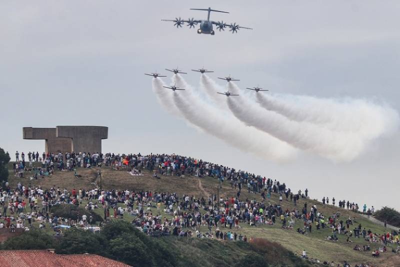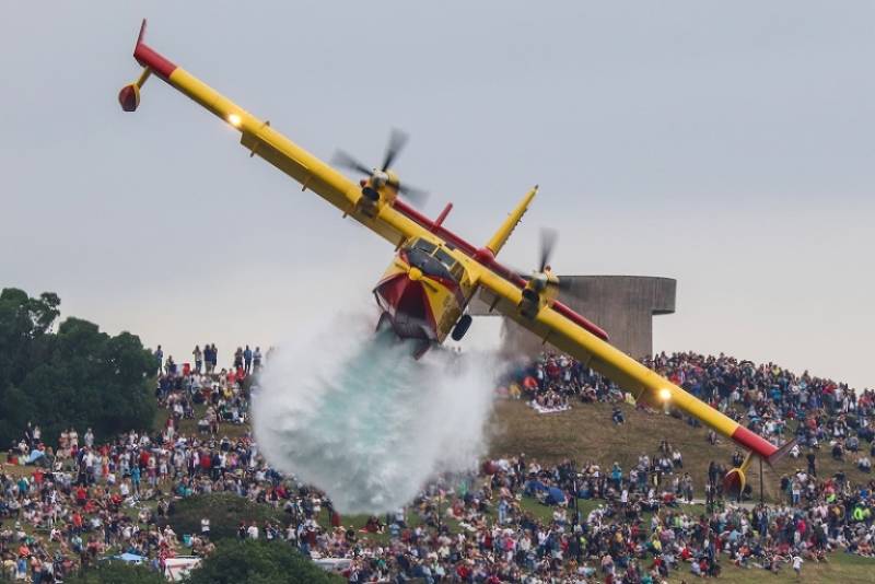 El pasado domingo los cielos de la gijonesa playa de San Lorenzo fueron testigo del tradicional Festival Aéreo, en que tomaron parte, entre otros medios, aviones Eurofighter, A400M, los apagafuegos CL-215T, a pesar del lluvioso día las aeronaves dejaron espectaculares imágenes.
