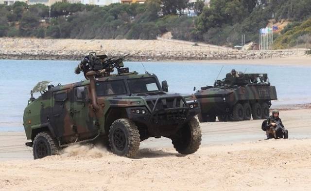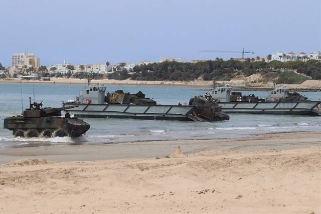 Blindados 8x8 “Piranha” y VAMTAC ST5 desembarcando desde las lanchas LCM1E.