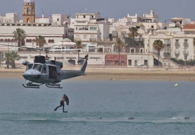 Previamente al desembarco un AB-212 infiltró a las fuerzas de reconocimiento de playa.