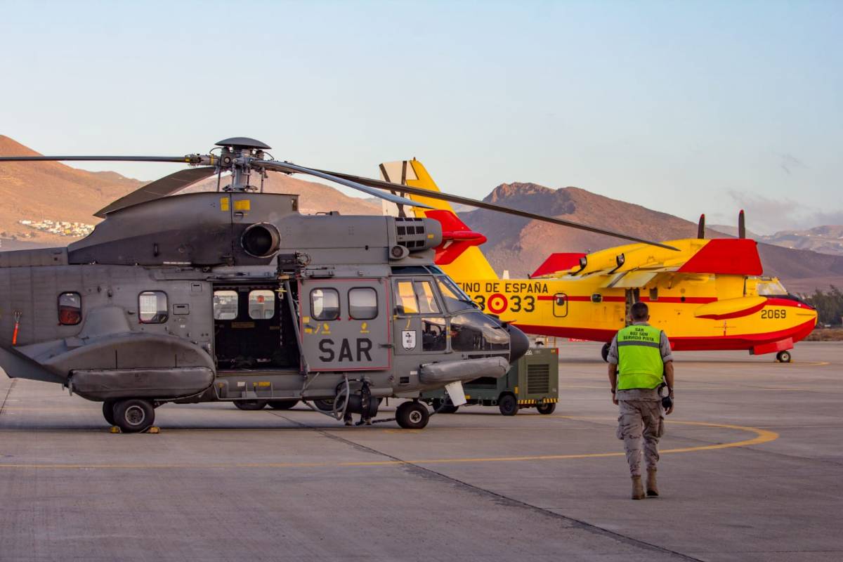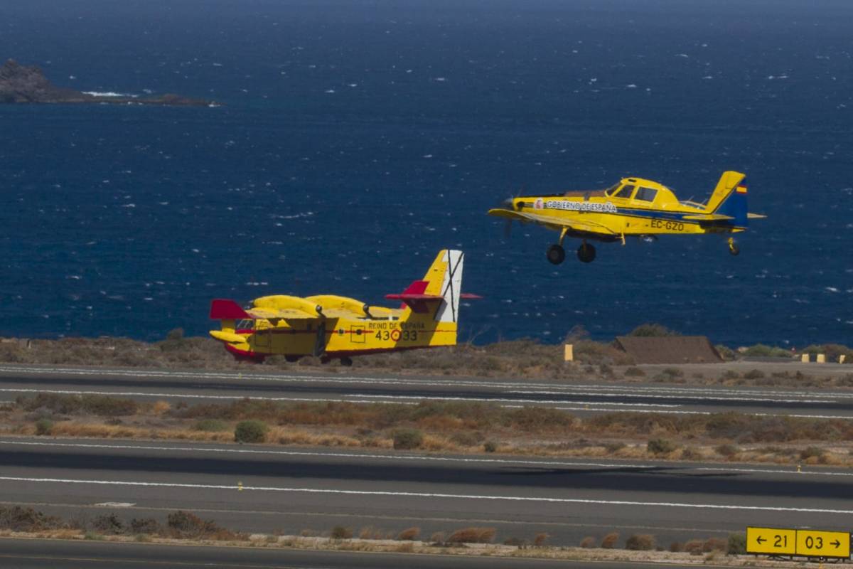 El Ejército del Aire ha desplegado sus aparatos anfibios en la base aérea de Gando (Gran Canaria), que bajo el control operativa de la Unidad Militar de Emergencias (UME), están siendo el elemento fundamental para hacer frente a los virulentos incendios.