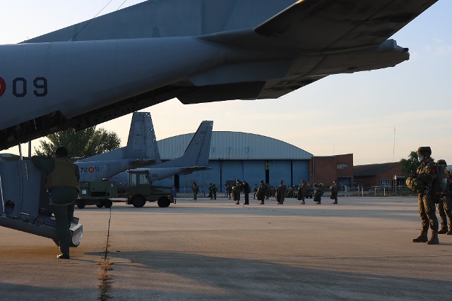Miembros de la BRIPAC listos para embarcar en dos C295 y un C-212 del Ejército del Aire. (foto BRIPAC)