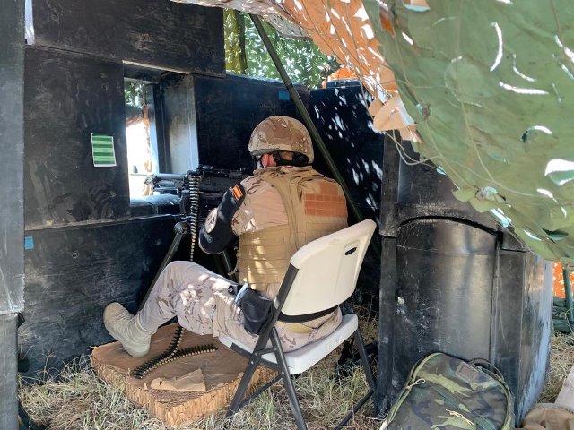 Un miembro de los Escuadrones de Apoyo al Despliegue Aérea vigila una base con una ametralladora FN MAG. (foto Ejército del Aire)