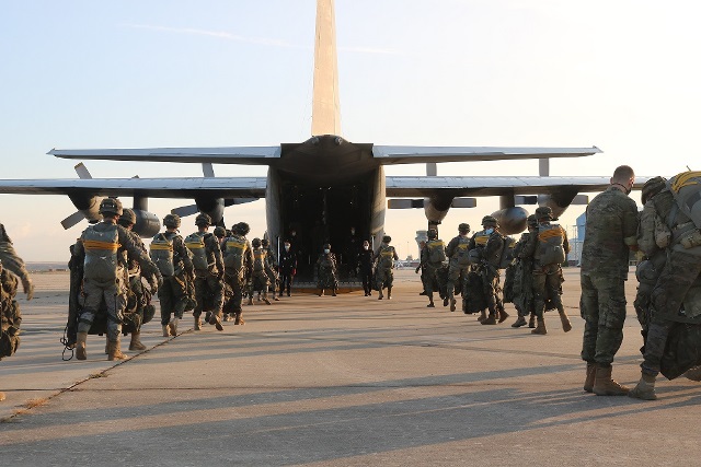 Personal de la BRIPAC subiendo a un C-130H, para su despliegue en Badajoz. (foto BRIPAC)