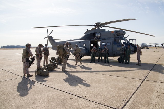 En el Sirio 2020 se realizó un ejercicio de Recuperación de Personal por parte de los helicópteros del 803 Escuadrón y personal del EZAPAC. (foto Ejército del Aire)