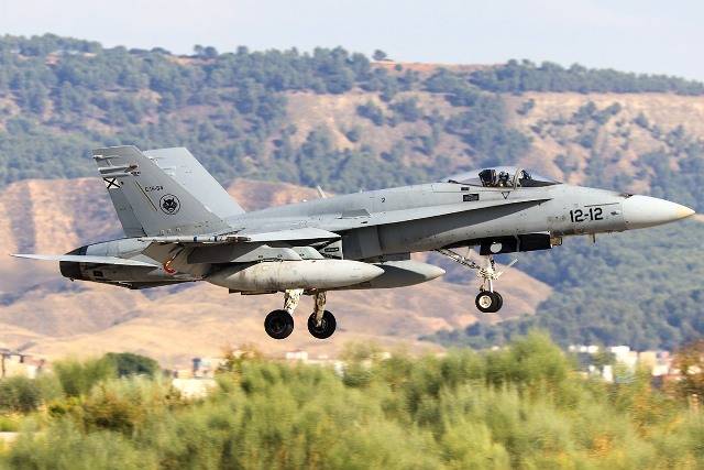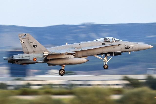 El Ala 46 desplazó cuatro de sus F/A-18A a Torrejón desde su Base de Gando (Gran Canaria) para participar en el Sirio 2020. (foto Ruben Galindo)