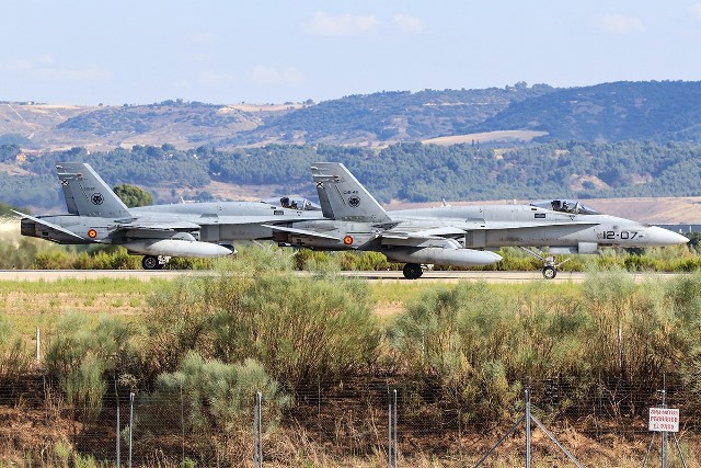 Dos EF-18M del Ala 12 listo para despegar desde su sede, la Base Aérea de Torrejón. (foto Ruben Galindo)