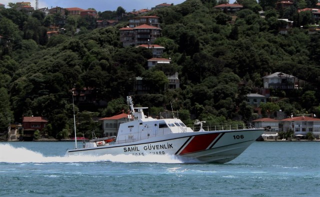 Desde el Canal de Estambul nos llegaban las fotos de una pequeña patrullera de la Guardia Costera de Turquía escoltando a la fragata de la Armada española “Méndez Núñez” (F-104) en su transitó entre el Mar Mediterráneo y el Negro. El Comando de la Guardia Costera o Sahil Güvenlik Komutanlığı (SGK) es el servicio de guardacostas de la República turca, está bajo el mando del Ministerio del Interior, aunque en caso de guerra sus medios y personal pasarían a estar subordinados a las Fuerza Navales de Turquía o Türk Deniz Kuvvetleri (TDK). Aunque la misión más vistosa de la SGK es patrullar los estrechos de Bosforo y Dardanellos, que permiten el aceso entre los dos citados mares, también vigila y controla el resto de la extensa costa turca (7.200 kilometros) y su Zona Económica Exclusiva (ZEE).