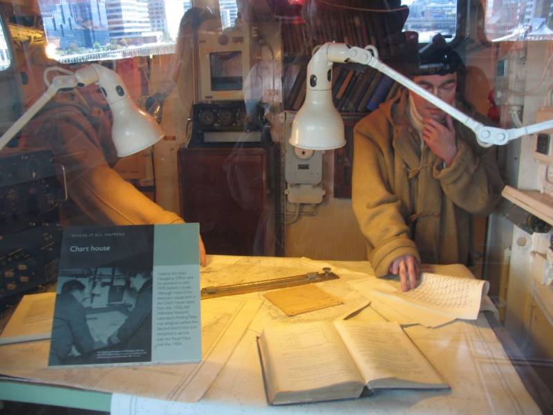 Puente de mando, donde puede verse cómo se preparaba el rumbo, gobierno y operación de la nave en aquellos años 50 por parte de la Royal Navy. (Antonio Ros Pau, copyright defensa.com)