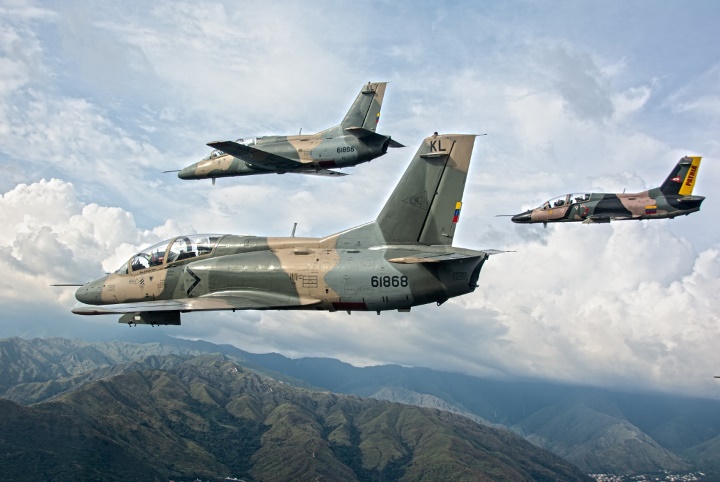 Formación de K-8W realizando aproximación a la base aérea El Libertador, Palo Negro, estado Aragua.
