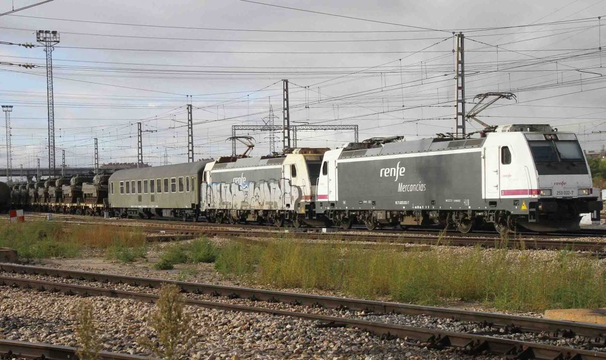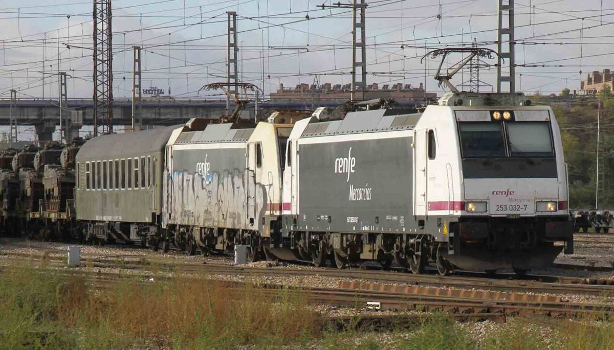 El tren que transportaba a los carros iba impulsado por dos locomotoras de la serie 253 de Renfe.(fotografía Julio Maíz)