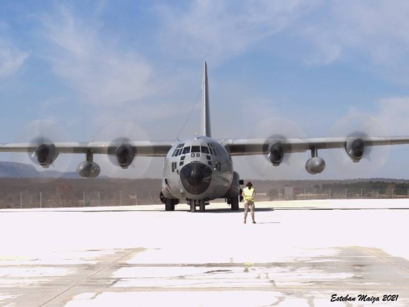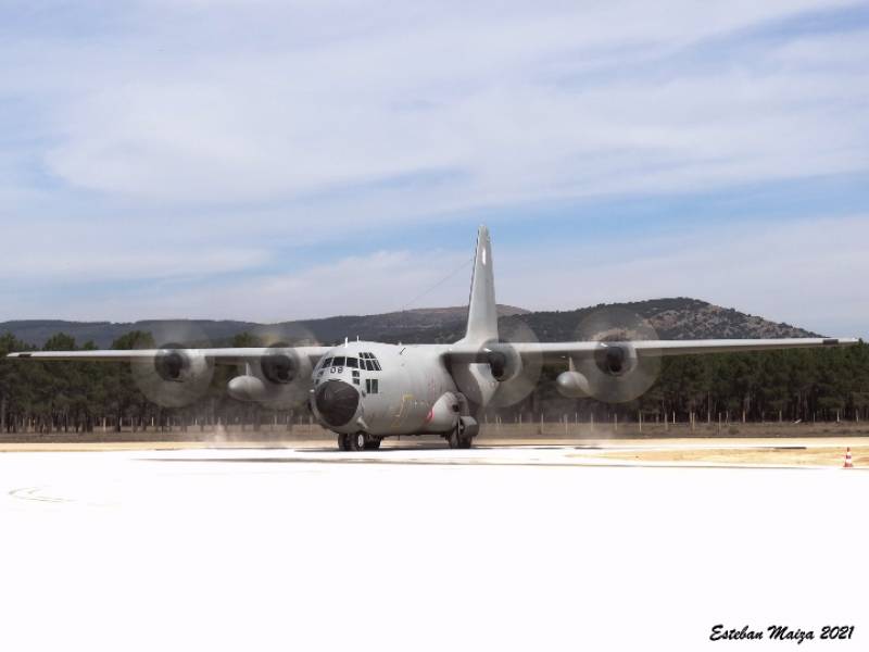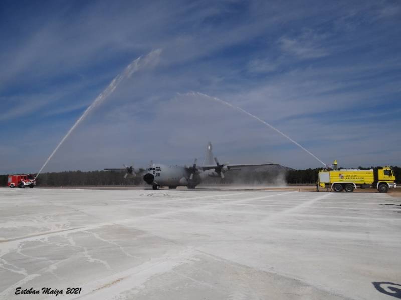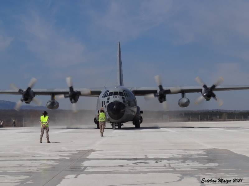 El primero de los cuatro Hércules, el T.10-08, que el Ejército del Aire ha vendido a la compañía estadounidense Blue Aerospace, aterrizó ayer en el aeródromo soriano de Garray donde quedó a la espera de la llegada de los otros tres Hércules restantes. Está programada la llegada para hoy viernes del T.10-09 y el lunes los dos últimos, el TL.10-01 y TK.10-07. Estos aviones estarán en este aeródromo hasta que se produzca la transferencia de titularidad a la citada empresa estadounidense, que los adquirió para extraer repuestos. (Fotos: Esteban Maiza)