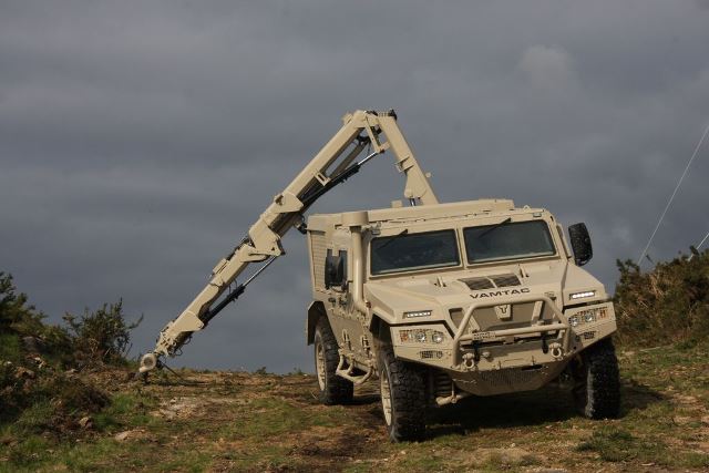 VAMTAC ST5 para desactivación de explosivos con brazo de apoyo al desminado