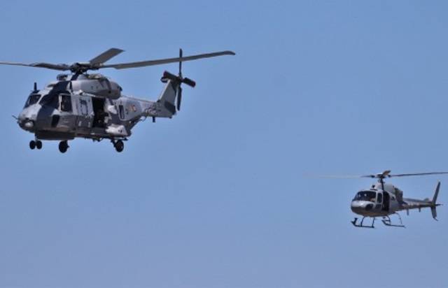 Un NH90 francés, de su “Marine Nationale”, seguido por un AS55 (Julio Maíz/defensa.com)