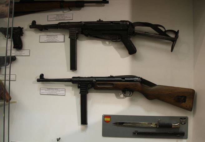 Subfusiles alemanes MP-40 (arriba) y MP-41 que utilizaron los divisionarios perfectamente conservados. Durante la visita se sacan de las vitrinas para empuñarlos.