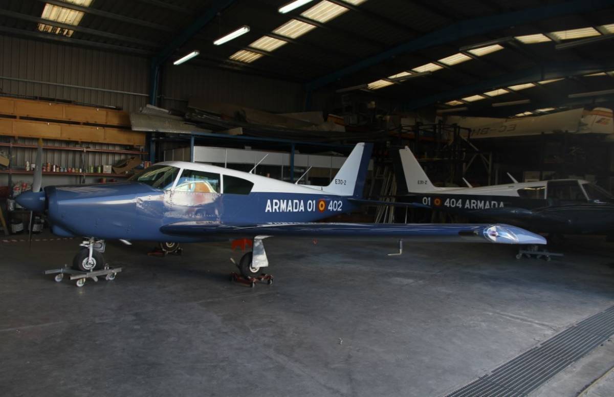 Otras de las aeronaves que se han beneficiado de las labores de restauración han sido las Piper PA-24 “Comanche”, en primer plano, y la PA-30 “Twin Comanche”, justo detrás, que en su día sirvieron en la 4ª Escuadrilla de la Armada. (Julio Maiz, copyright