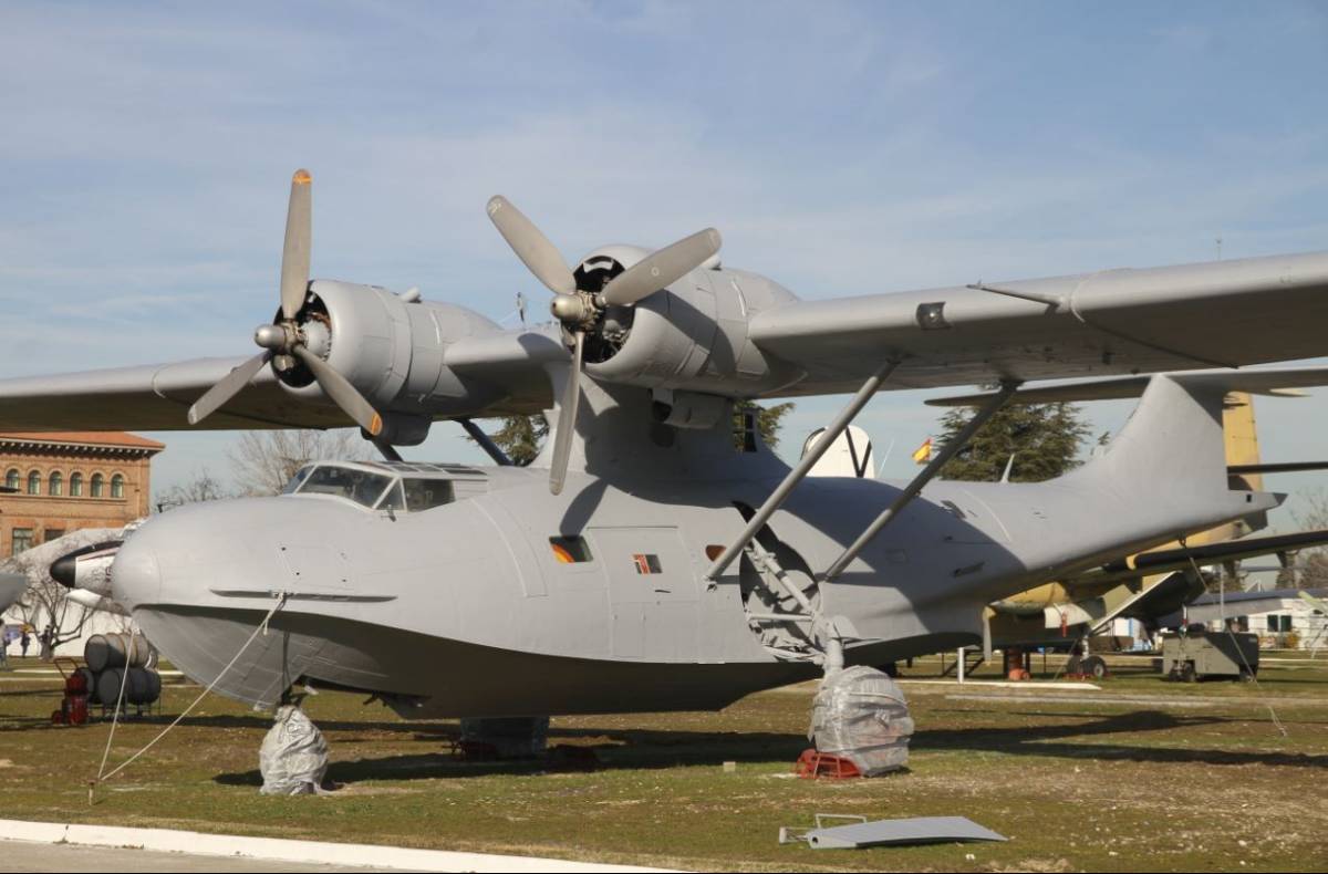 Imagen del aparato anfibio Consolidated PBY-5A “Catalina”, al que, una vez decapado, se le aplicó la imprimación, que, además de ser una fase previa a su pintura, lo preserva de las inclemencias, hasta que se acabe su restauración. (Julio Maiz, copyright
