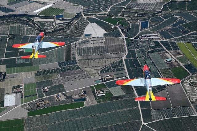 Los dos PC-21 sobrevolando el murciano cabo de Palos, muy cercano a la AGA.