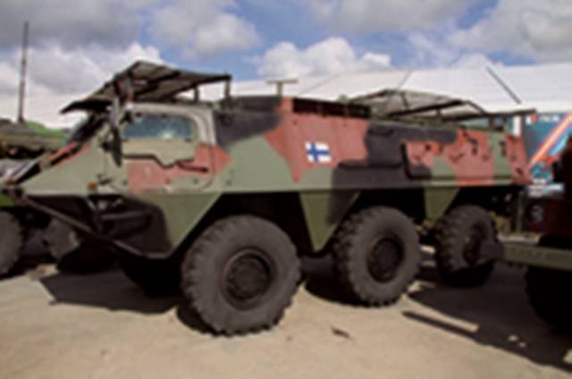 6x6 finlandés Sisu XA-185, con rejillas anti UAV (Unmanned Aerial Vehicle) en la parte superior, de una partida de al menos 20 cedidos a los ucranianos.