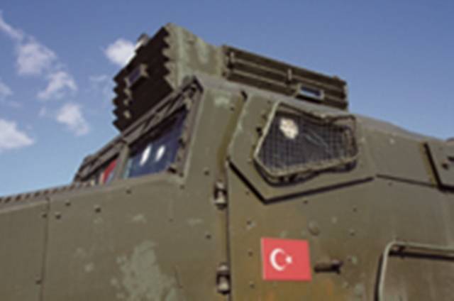 Los “Kirpi” turcos también llegaron a manos ucranianas y este ejemplar presenta impactos en los vidrios blindados del conductor.