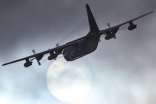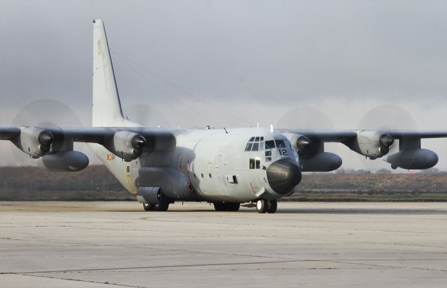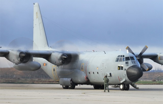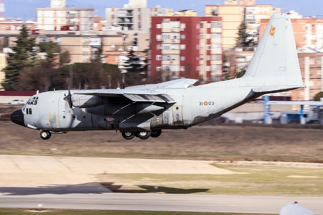El C-130H destinado al Museo del Aire realizando su última toma el pasado 29 de diciembre. (foto Rubén Galindo)