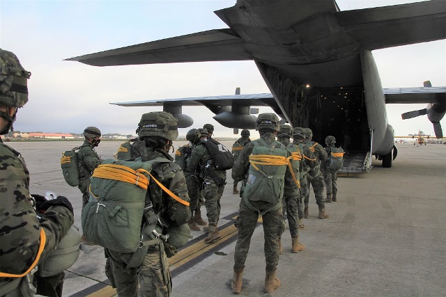 Imagen de la última vez que el personal de la BRIPAC embarca en un C-130 español. (foto Julio Maíz)