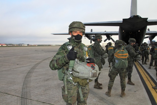 El general de la BRIPAC Luis Sáez Rocandio estuvo al frente de sus hombres en esta último salto desde el “Hércules”. (foto Julio Maíz)