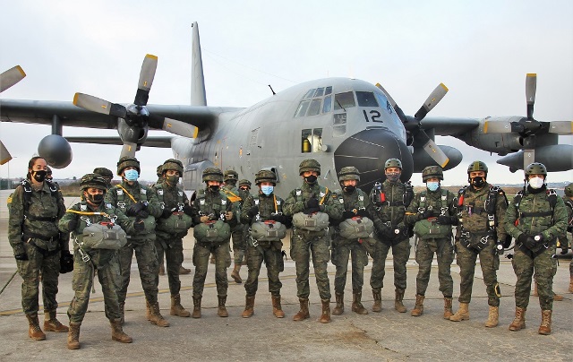Antes de embarcar los “paracas” posaron delante del “Hércules”, antes de embarcar. (foto Julio Maíz)