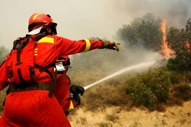 Apagando un fuego en la localidad de Zuera: los incendios forestales hacen de los veranos una de las épocas de más actividad (foto UME).