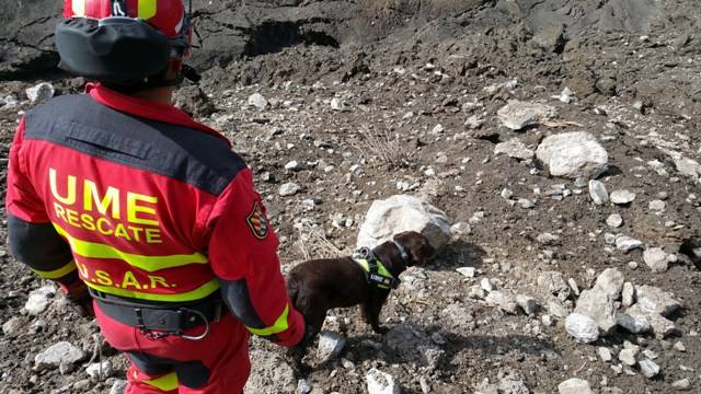 El uso de los perros de rescate es otra capacidad que utiliza, como tras el terremoto de Nepal, cuando se usaron los especializados en rescate de víctimas enterradas (foto UME).